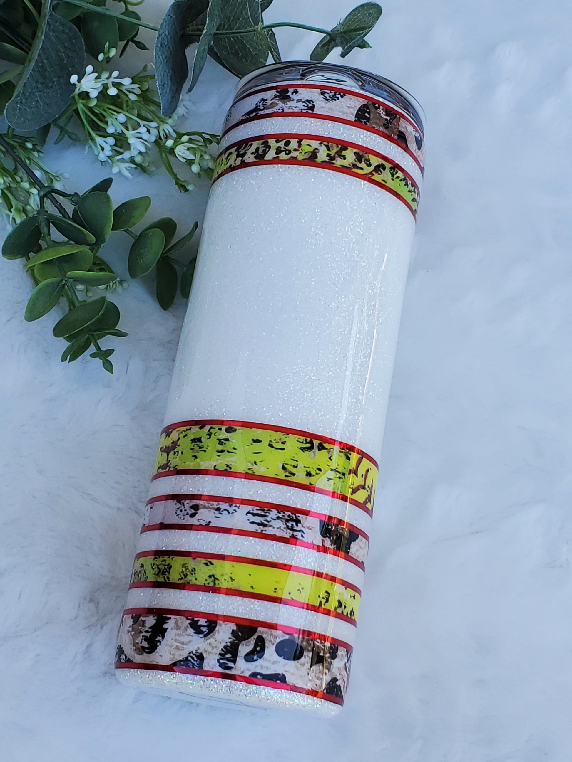 Raising Ballers softball baseball Glitter Custom Tumbler - 20 oz Skinny Straight - white yellow red