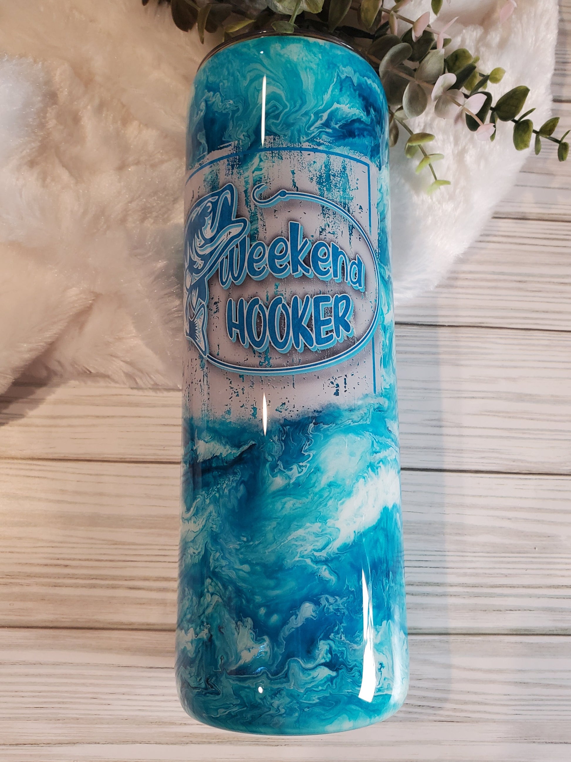 This 30 oz custom tumbler is an ink swirl using blues to match the "Weekend Hooker" decal. A great conversation starter for that fisherman in your life!