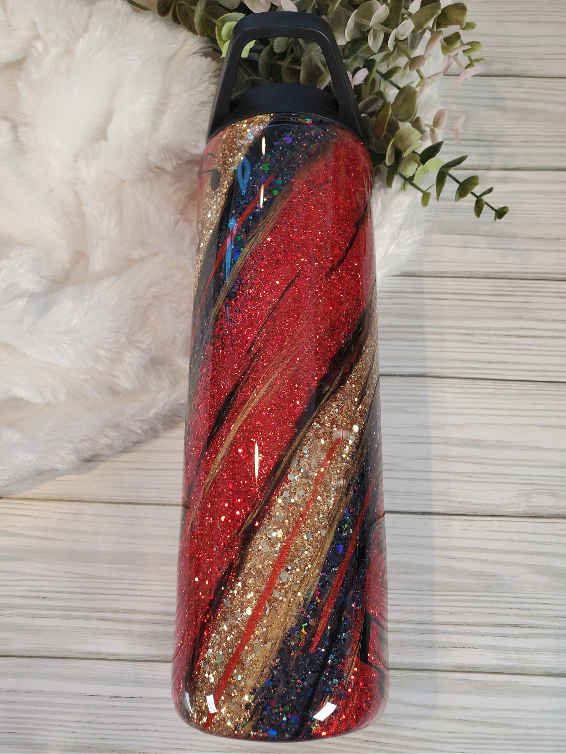 Music note Glitter swirl milkyway Custom DUO HYDRO Tumbler - 30 oz Skinny Straight -red black gold